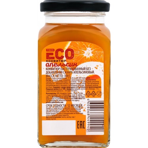 Конфитюр ЛЕНТА ECO Апельсин, без сахара, 300г в магазинах Лента