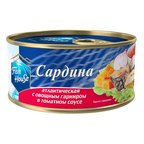 Консервы Сардина Fish house атлантическая с овощным гарниром в томатном соусе куски, 240гр, ж/б в магазинах Пятерочка