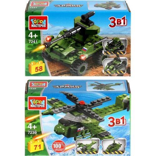 Конструктор ГОРОД МАСТЕРОВ Армия, военный, 3в1, в ассортименте в магазинах Лента