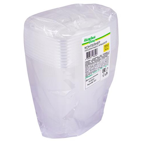 Контейнеты для пищевых продуктов Каждый день одноразовые с крышкой 500 мл, 10 шт (kastd) в магазинах Ашан