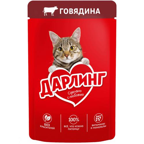 Корм Дарлинг с говядиной в подливе для взрослых кошек, 75г в магазинах Перекресток