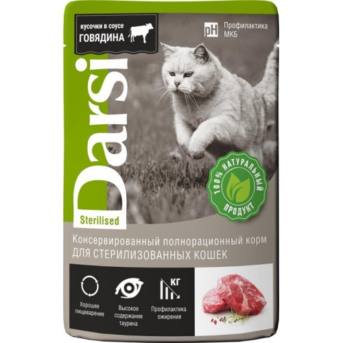 Корм консервированный для кошек DARSI Говядина, для стерилизованных, 85г в магазинах Лента