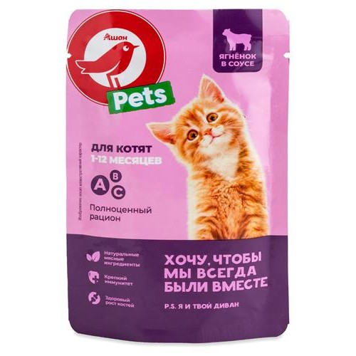 Корм консервированный для котят АШАН Красная птица Ягненок в соусе, 75 г (kastd) в магазинах Ашан