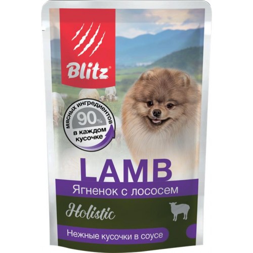 Корм консервированный для собак BLITZ Holistic Ягненок с лососем кусочки в соусе, 85г в магазинах Лента