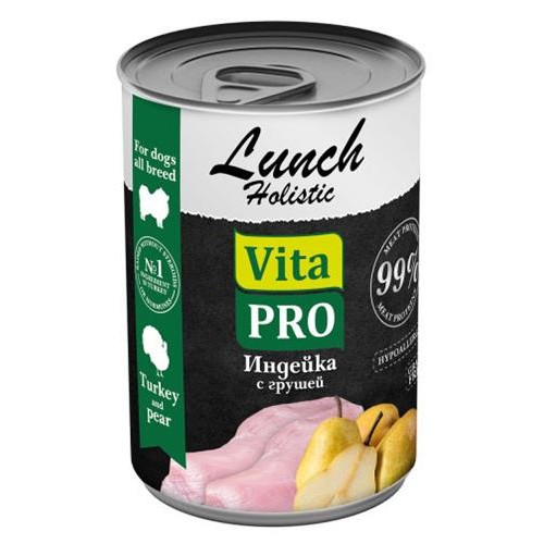 Корм консервированный для собак Vita Pro Lunch индейка с грушей, 400 г (kastd) в магазинах Ашан