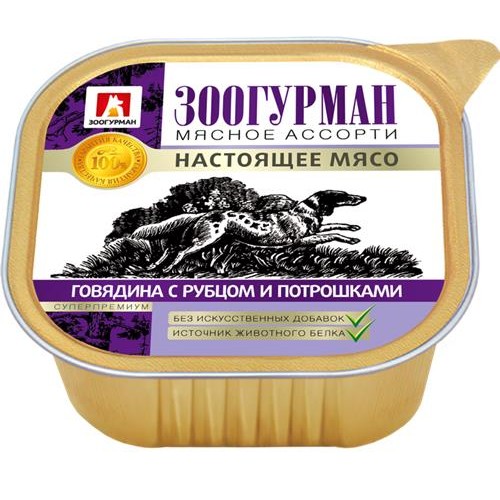Корм консервированный для собак ЗООГУРМАН Мясное ассорти Говядина с рубцом и потрошками, 300г в магазинах Лента