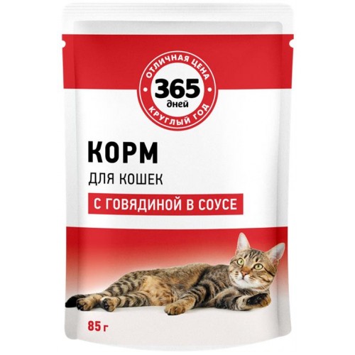 Корм консервированный для взрослых кошек 365 ДНЕЙ с говядиной в соусе, 85г в магазинах Лента