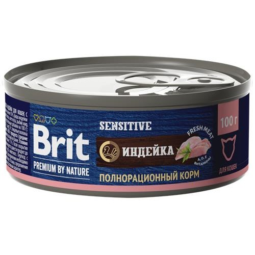 Название товара: Консервированный корм для кошек BRIT Premium by Nature, с мясом индейки, для питомцев с чувствительным пищеварением.