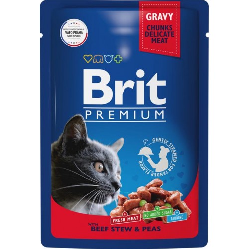 Паучи BRIT Premium станут отличным дополнением к полнорационному сухому корму и внесут приятное разнообразие в рацион вашей кошки. Позвольте своему питомцу наслаждаться изысканным вкусом говядины и горошка в каждом кусочке влажного корма BRIT Premium.