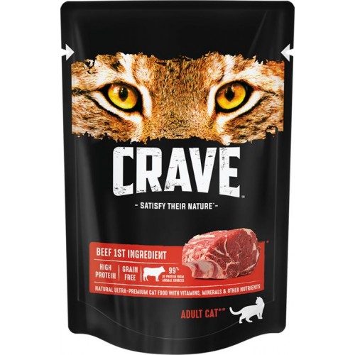 Корм консервированный для взрослых кошек CRAVE Говядина, 70г в магазинах Лента