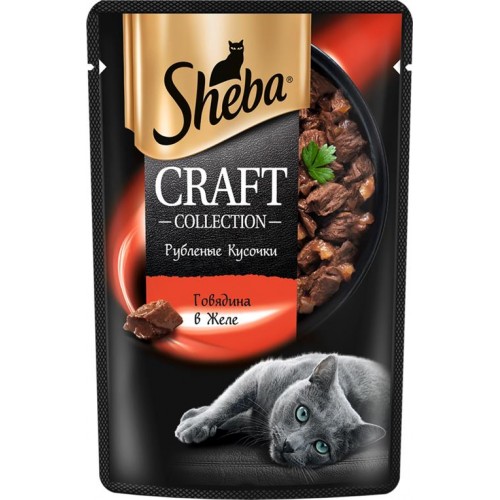 Корм консервированный для взрослых кошек SHEBA Craft Рубленые кусочки Говядина в желе, 75г в магазинах Лента