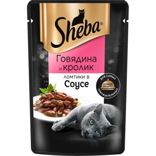 Корм консервированный для взрослых кошек SHEBA ломтики в соусе с говядиной и кроликом, 75г в магазинах Лента