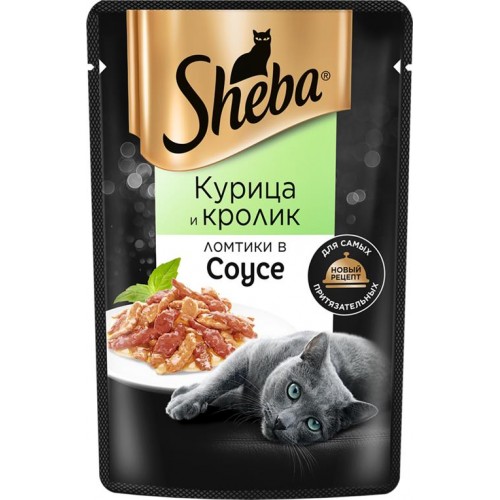 Корм консервированный для взрослых кошек SHEBA ломтики в соусе с курицей и кроликом, 75г в магазинах Лента