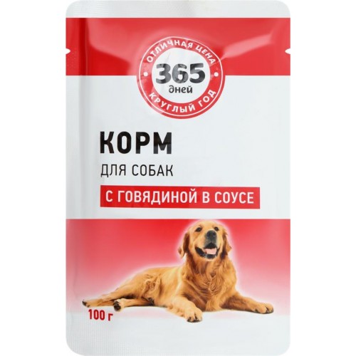 Корм консервированный для взрослых собак 365 ДНЕЙ с говядиной в соусе, 100г в магазинах Лента