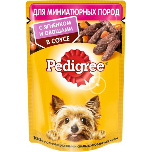 Корм консервированный для взрослых собак PEDIGREE с ягненком и овощами в соусе, для миниатюрных пород, 85г в магазинах Лента
