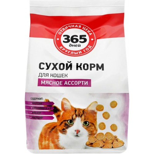 Корм сухой для кошек 365 ДНЕЙ Мясное ассорти, 2кг в магазинах Лента