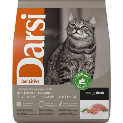 Корм сухой для кошек DARSI Sensitive Индейка, 1,8кг в магазинах Лента