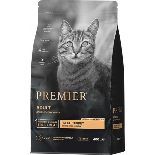 Корм сухой для кошек PREMIER Cat Adult Свежая индейка, 400г в магазинах Лента