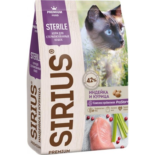 Корм сухой для кошек SIRIUS Индейка и курица, для стерилизованных, 400г в магазинах Лента