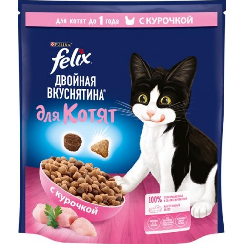 Корм сухой для котят FELIX Двойная вкуснятина с курочкой, до года, 600г в магазинах Лента