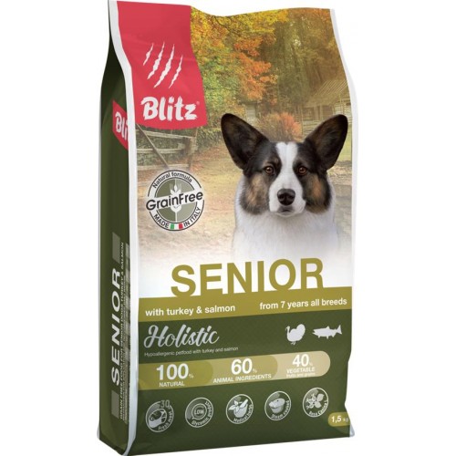 Корм сухой для собак BLITZ Holistic Индейка и лосось, 1,5кг в магазинах Лента