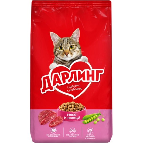 Корм сухой для взрослых кошек ДАРЛИНГ с мясом и добавлением овощей, 760г в магазинах Лента