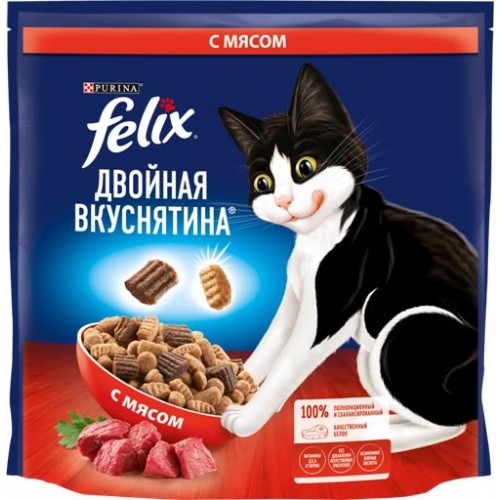 Корм сухой для взрослых кошек FELIX Двойная вкуснятина с мясом, 1,3кг в магазинах Лента