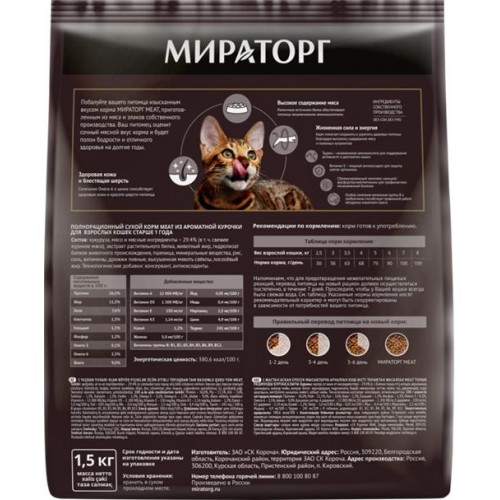 Корм сухой для взрослых кошек МИРАТОРГ MEAT из ароматной курочки, 1500г в магазинах Лента