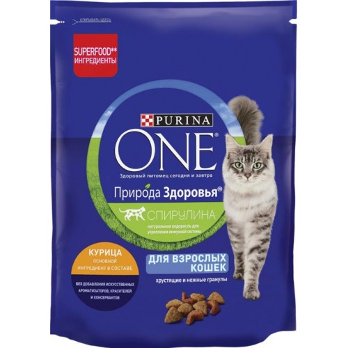 Корм сухой для взрослых кошек PURINA ONE Superfood с курицей, 180г в магазинах Лента