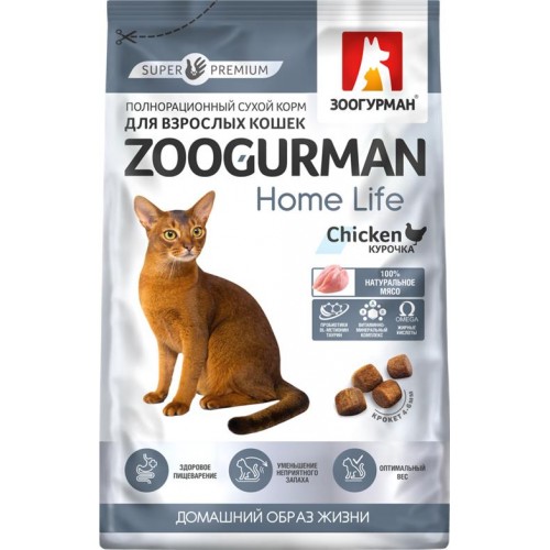 Корм сухой для взрослых кошек ЗООГУРМАН Home Life Курочка, 1,5кг в магазинах Лента