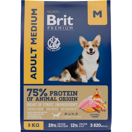 Корм сухой для взрослых собак BRIT Premium Adult М для средних пород, 3кг в магазинах Лента