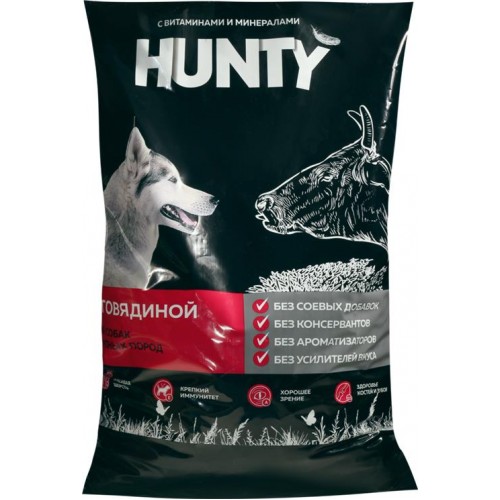 Корм сухой для взрослых собак HUNTY с говядиной, для всех пород, 10кг в магазинах Лента