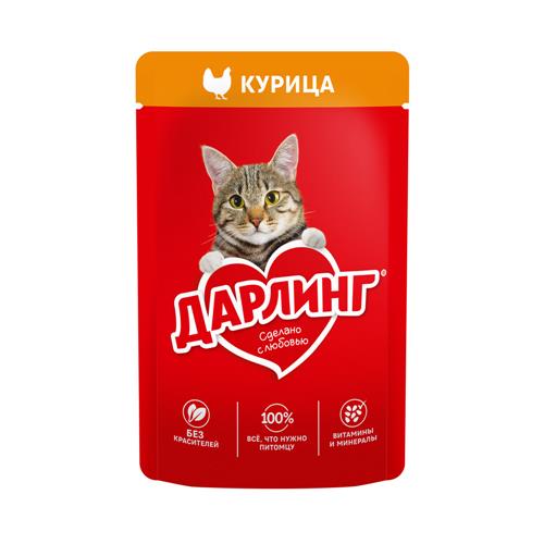 Корм влажный Дарлинг для взрослых кошек с курицей в подливе, 75г в магазинах Фасоль