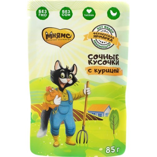 Корм влажный для кошек ФЕРМА КОТА ФЁДОРА сочные кусочки с курицей, 85г в магазинах Лента