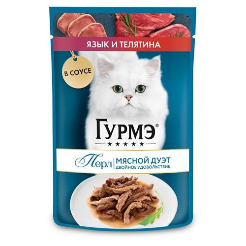 Корм влажный для кошек Гурмэ Перл Мясной со вкусом язык и телятина в соусе, 75 г (kastd) в магазинах Ашан