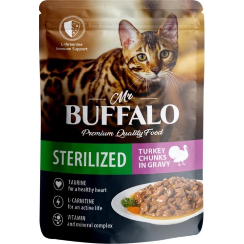 Корм влажный для кошек MR.BUFFALO Sterilized Индейка в соусе, для стерилизованных, 85г в магазинах Лента