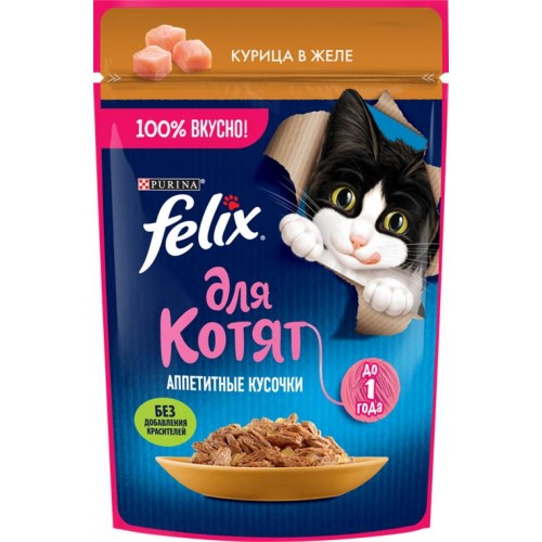 Корм влажный для котят FELIX Аппетитные кусочки Курица в желе, 75г в магазинах Лента