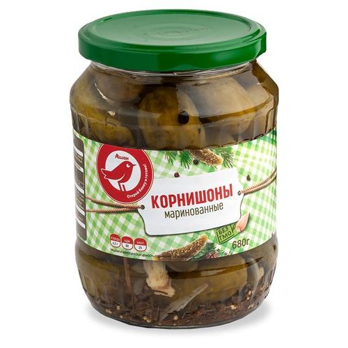 Корнишоны АШАН Красная птица маринованные, 680 г (kastd) в магазинах Ашан