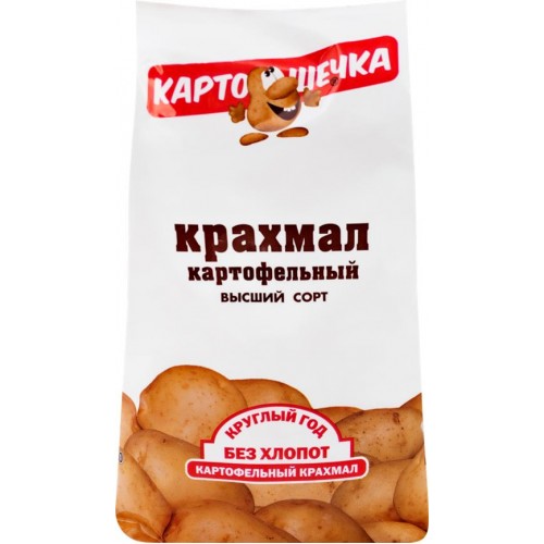 Кроме того, крахмал КАРТОШЕЧКА станет отличным средством для подкрахмаливания белья, делая его свежим и хрустящим. А еще он поможет вам легко и быстро удалить загрязнения с ковровых покрытий, вернув им первоначальный вид.