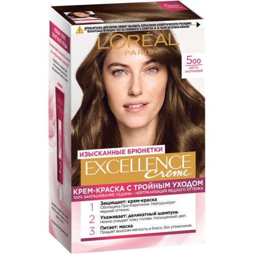 Краска для волос Excellence от LOreal Paris - это уникальный продукт, который обеспечивает тройной уход вашим волосам: защиту, уход и питание. С помощью стойкой крем-краски, обогащенной про-кератином и специальной сывороткой, ваши волосы будут под надежной защитой во время процесса окрашивания.