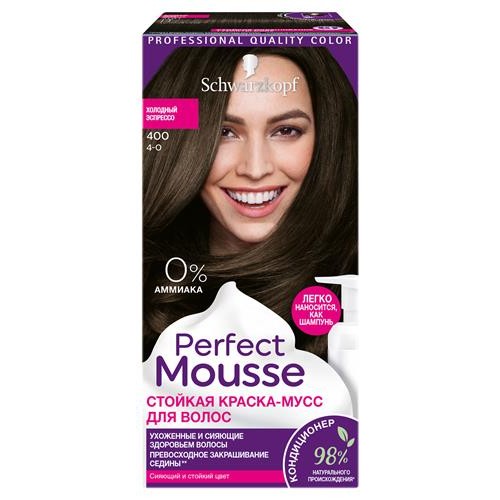 Краска-мусс для волос Perfect Mousse без аммиака Холодный эспрессо тон 400, 93,5 мл (kastd) в магазинах Ашан