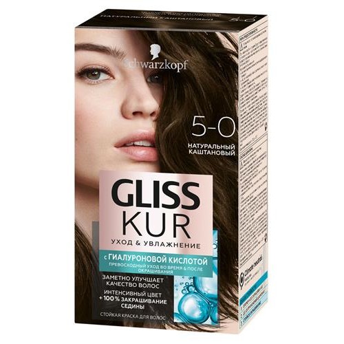 Краска стойкая для волос Gliss Kur Уход & Увлажнение 5-0 Натуральный каштановый, 142,5 мл (kastd) в магазинах Ашан