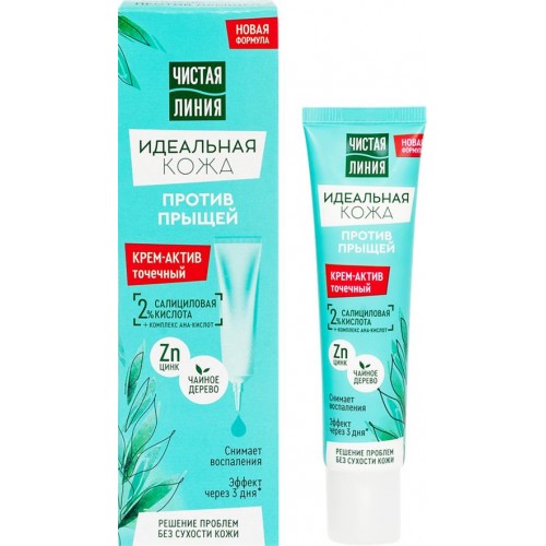 Крем-актив для лица ЧИСТАЯ ЛИНИЯ Идеальная кожа против прыщей, 40мл в магазинах Лента