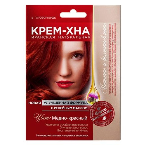 Крем-Хна в готовом виде Фитокосметик Медно-красный с репейным маслом, 50 мл (kastd) в магазинах Ашан