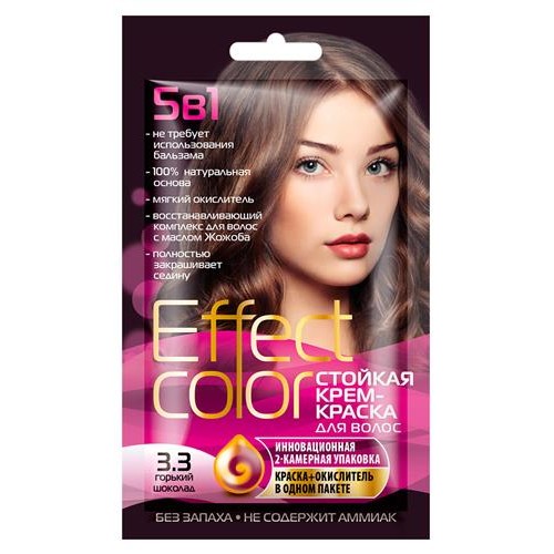 Крем-краска для волос Effect Color Горький шоколад тон 3.3, 50 мл (kastd) в магазинах Ашан