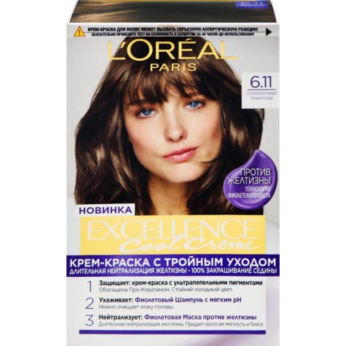 Крем-краска для волос L'OREAL Excellence Cool Creme 6.11 Ультрапепельный темно-русый, 258г в магазинах Лента