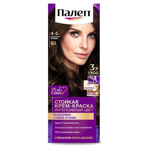 Крем краска стойкая для волос Palette G3 4-5 Золотистый трюфель защита от вымывания цвета, 110 мл (kastd) в магазинах Ашан