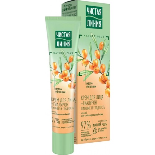Крем содержит 97% компонентов натурального происхождения, что делает его идеальным выбором для ухода за кожей лица. Активные ингредиенты, такие как эссенция Nature Plus, масло облепихи и гиалурон, питают и восстанавливают кожу, предотвращая появление морщин. Крем глубоко увлажняет кожу на 24 часа, восстанавливая липидный барьер.