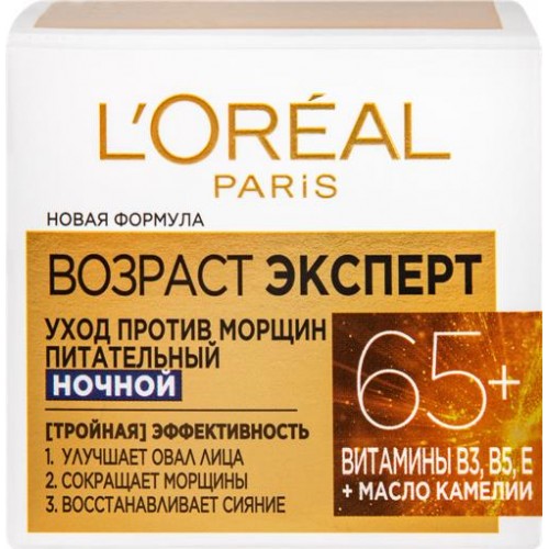 Крем ночной для лица L'OREAL Возраст Эксперт 65+, против морщин, 50мл в магазинах Лента