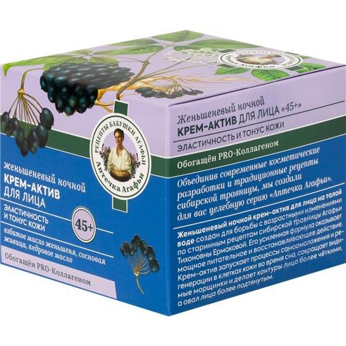 Крем ночной для лица РЕЦЕПТЫ БАБУШКИ АГАФЬИ Аптечка Агафьи Женьшеневый 45+, 50мл в магазинах Лента